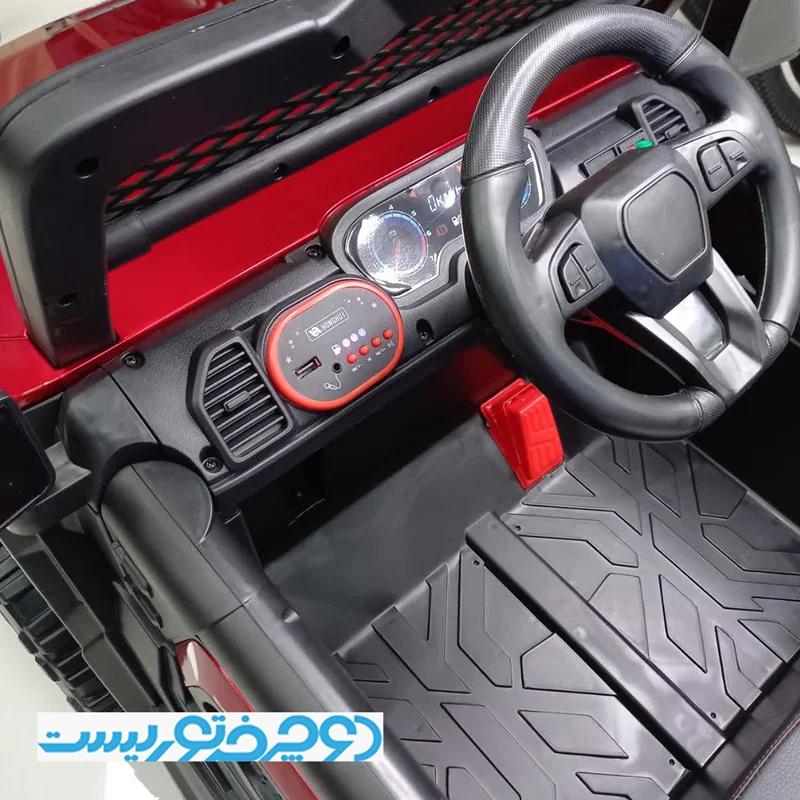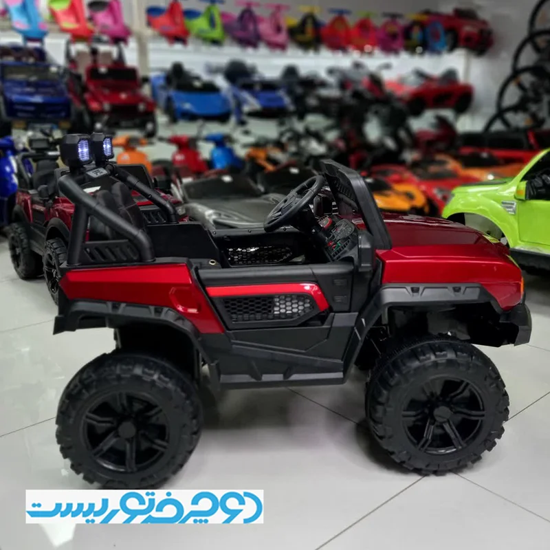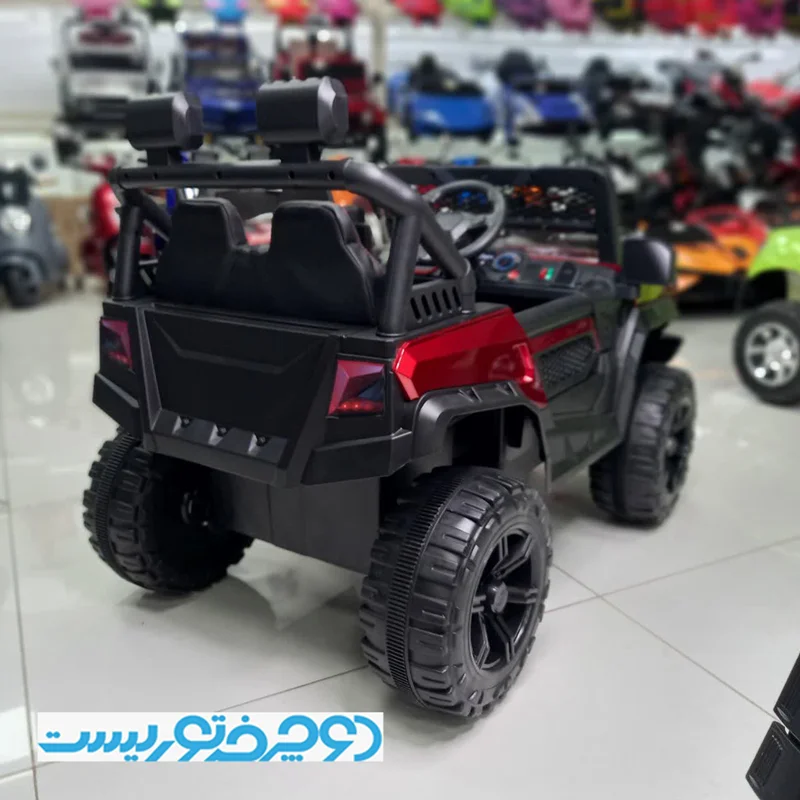ماشین شارژی جیپ 2 موتوره با رنگ متالیک . درهای بازشو و کمک فنر دار . باتری 12 ولت 4.5 آمپر.