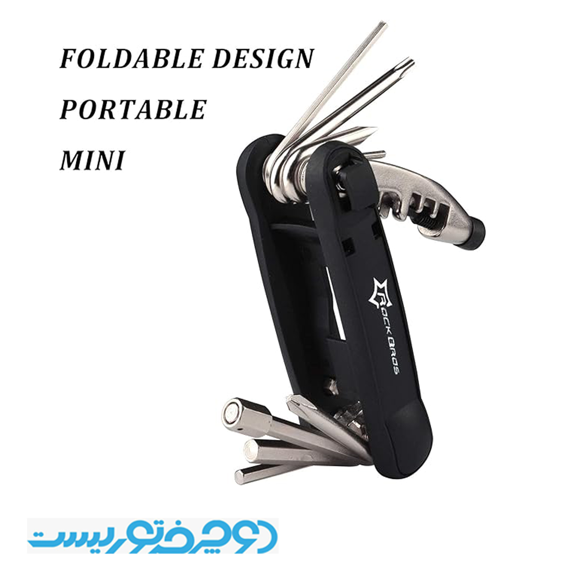 آچار چندکاره راکبراس شامل آچار آلن های 2 و 3 و 4 و 5 و 6 و 8 و آلن ستاره T25و پیچ گوشتی 4 سو و 2 سو . همچنین این ابزار دارای آچار زنجیر می باشد . در کناره های این ابزار 2 عدد تایلور کار گذاشته شده که به عنوان آچار اسپک نیز کاربرد دارد .