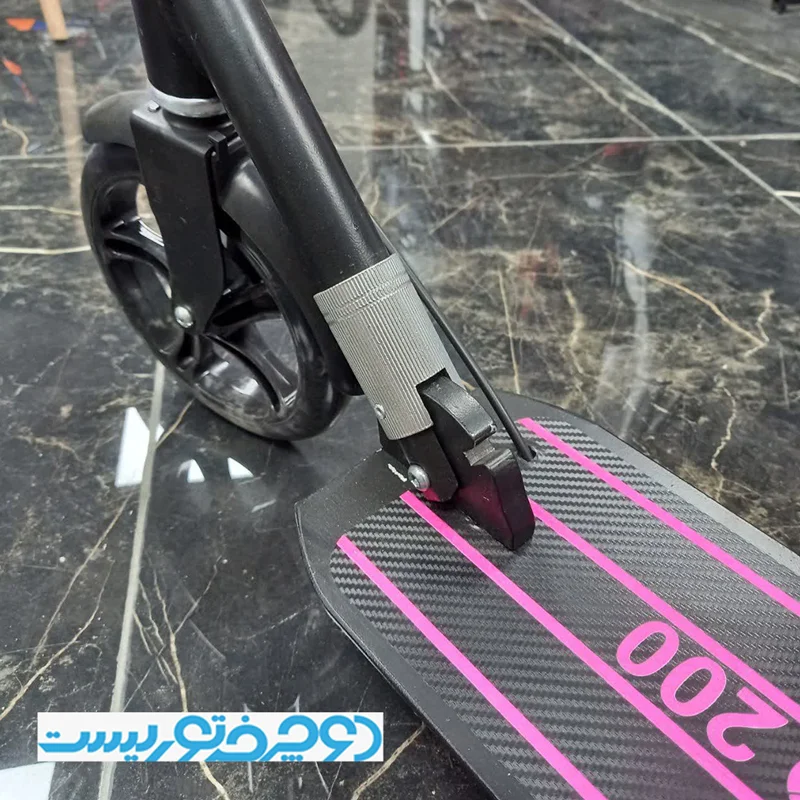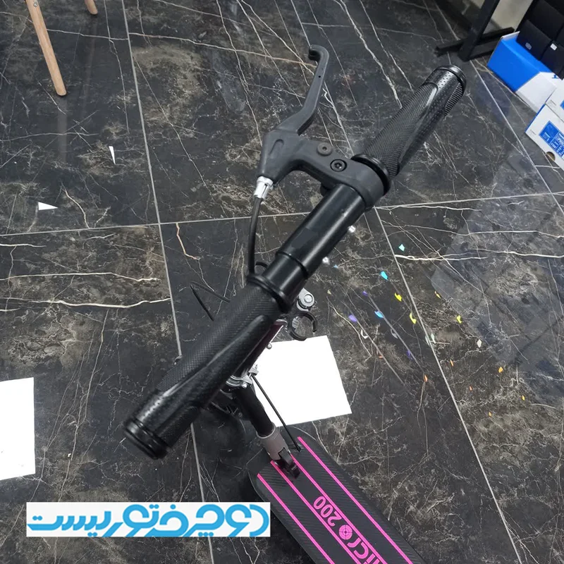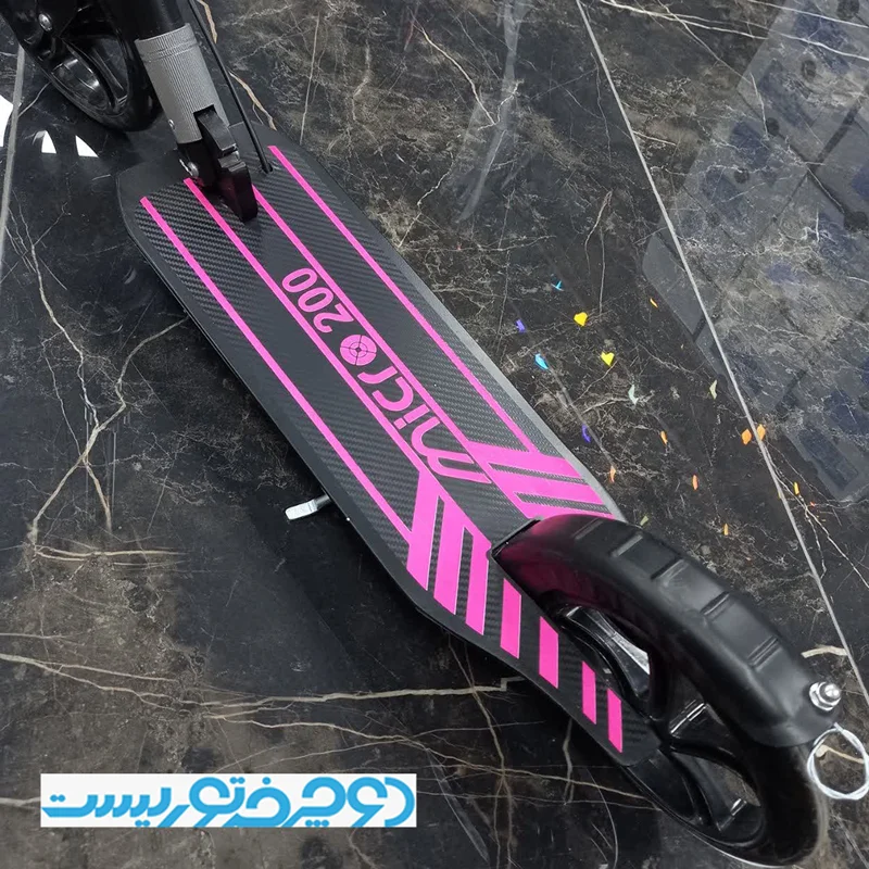 اسکوتر بزرگ میکرو با سایز چرخ 200 . بدنه اسکوتر تمام آلومینیوم . دارای ترمز دستی که به چرخ عقب متصل است . قابلیت تنظیم ارتفاع فرمان اسکوتر بدون استفاده از آچار . این اسکوتر همچنین دارای جک نگهدارنده می باشد . مناسب سن 7 سال به بالا و وزن تا 100 کیلوگرم .