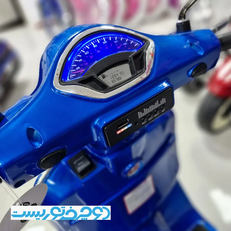 موتورشارژی طرح وسپا دو موتوره با رنگ متالیک ،موزیکال ، فلش خور صندلی چرم . این موتور دارای کنترل از راه دور می باشد .