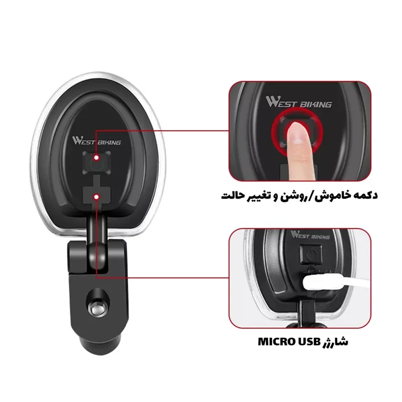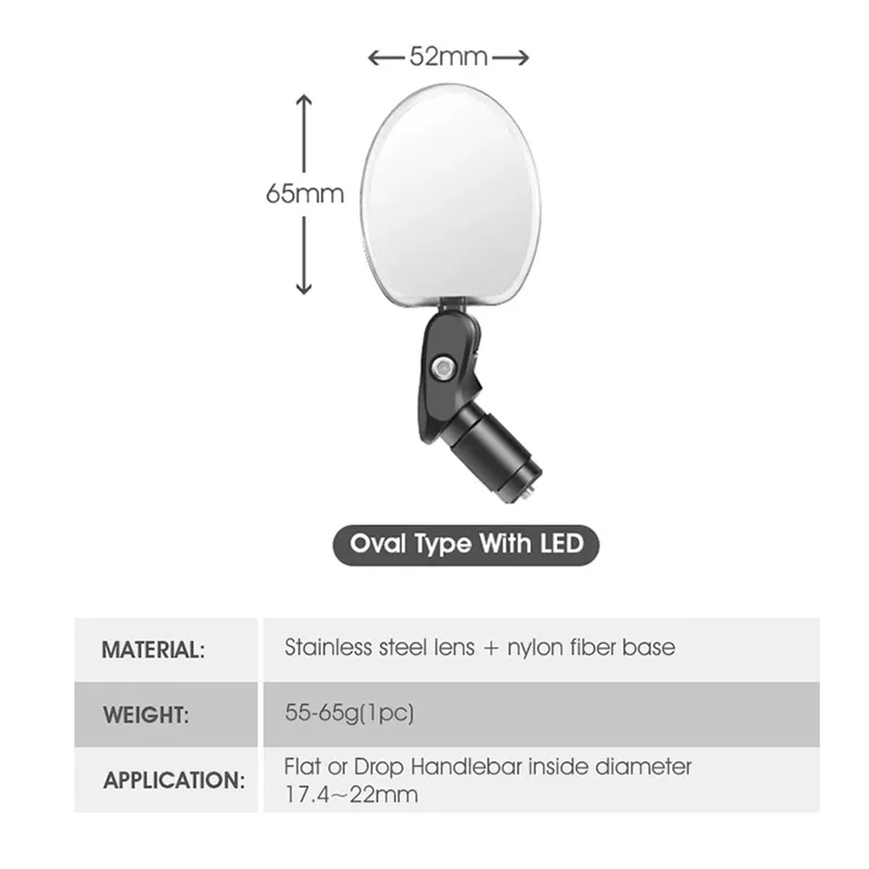 آینه دوچرخه چراغ دار ، قابل نصب بر روی فرمان کوهستان و کورسی . این آینه میدان دید وسیعی دارد و دید مناسبی دارد . چراغ این آینه نوعی هشدار دهنده در شب می باشد و قابلیت شارژ دارد .